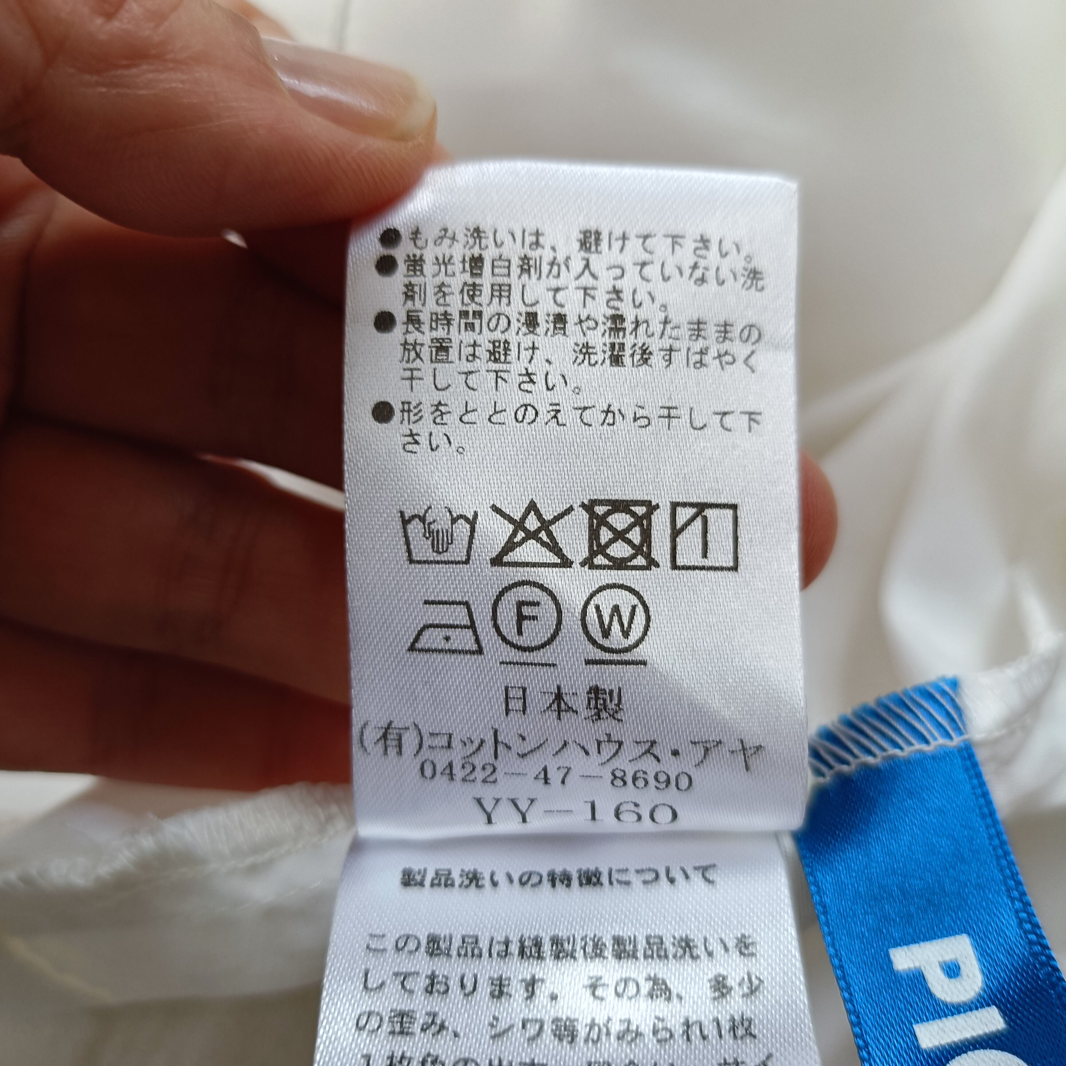 洗濯方法:ご自宅での洗濯可。もみ洗いは避けてください。蛍光増白剤が入っていない洗剤をご使用ください。長時間のつけ置き、濡れたままの放置は避け、洗濯後は素早く形を整えてから干してください。