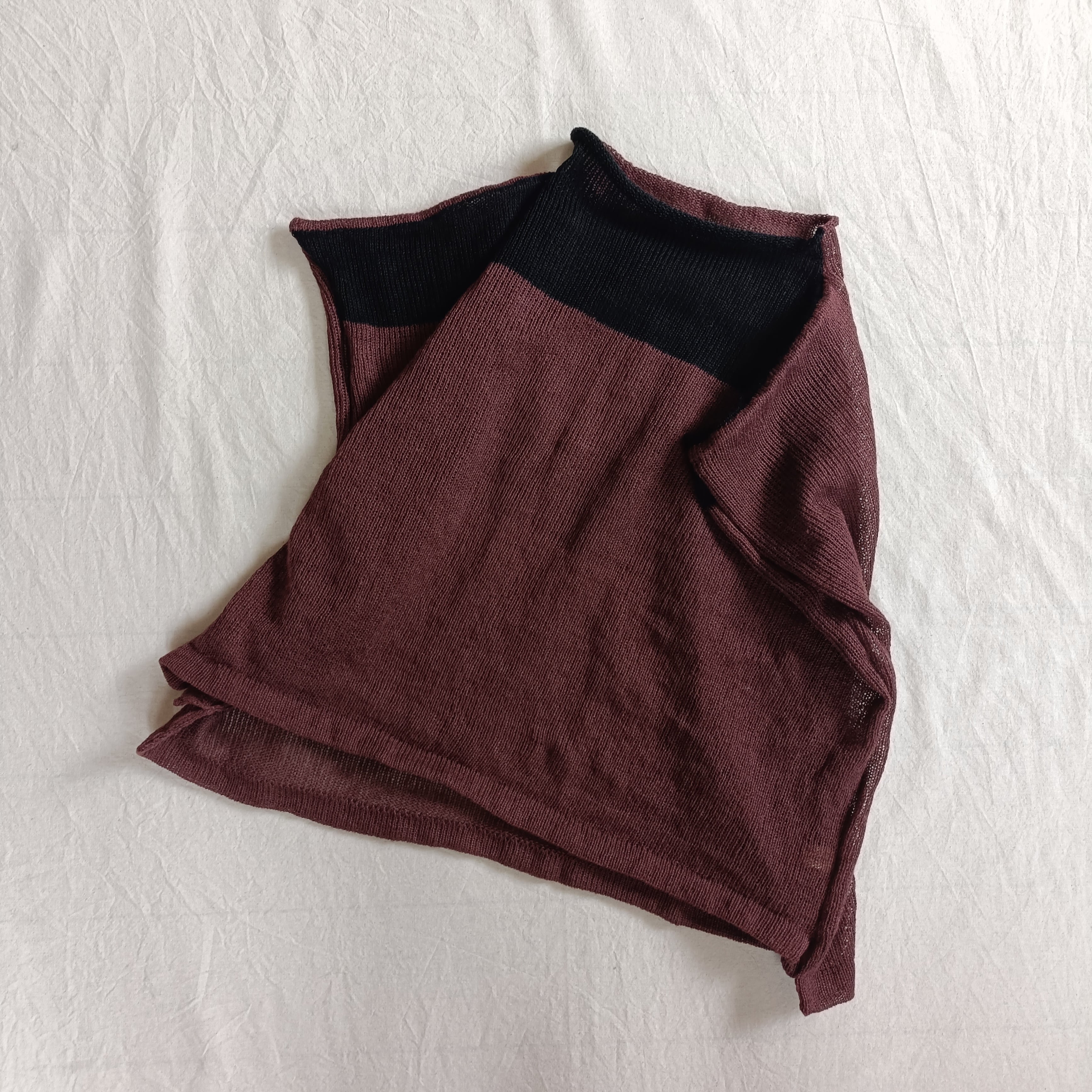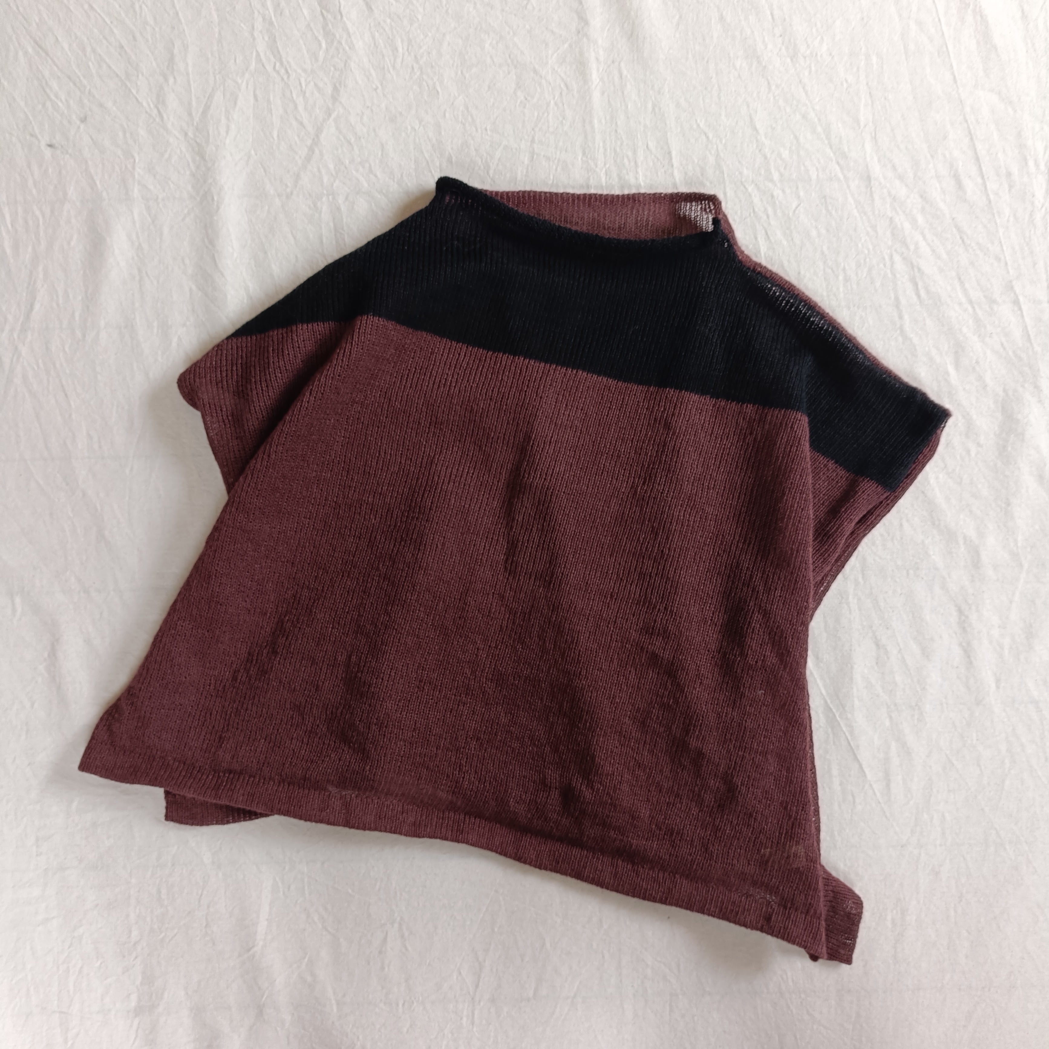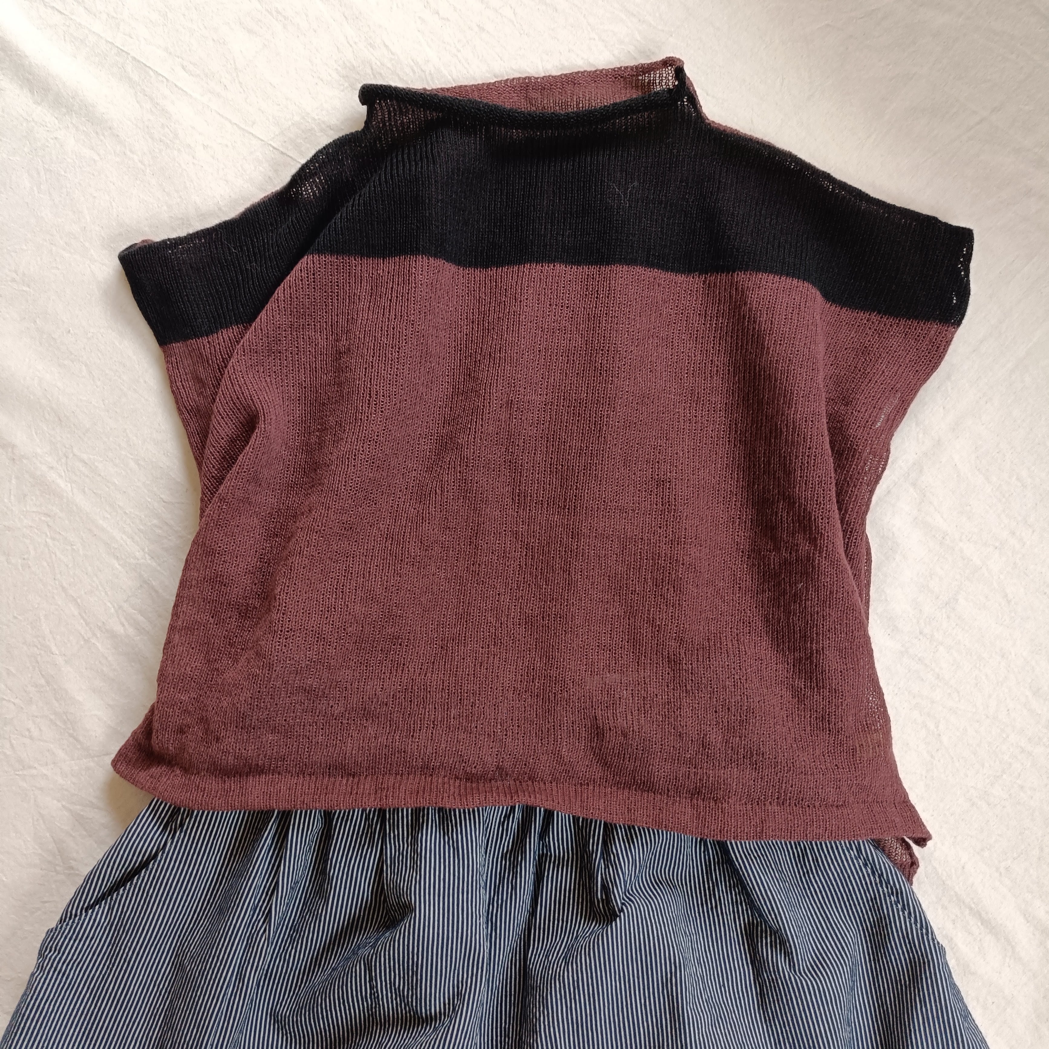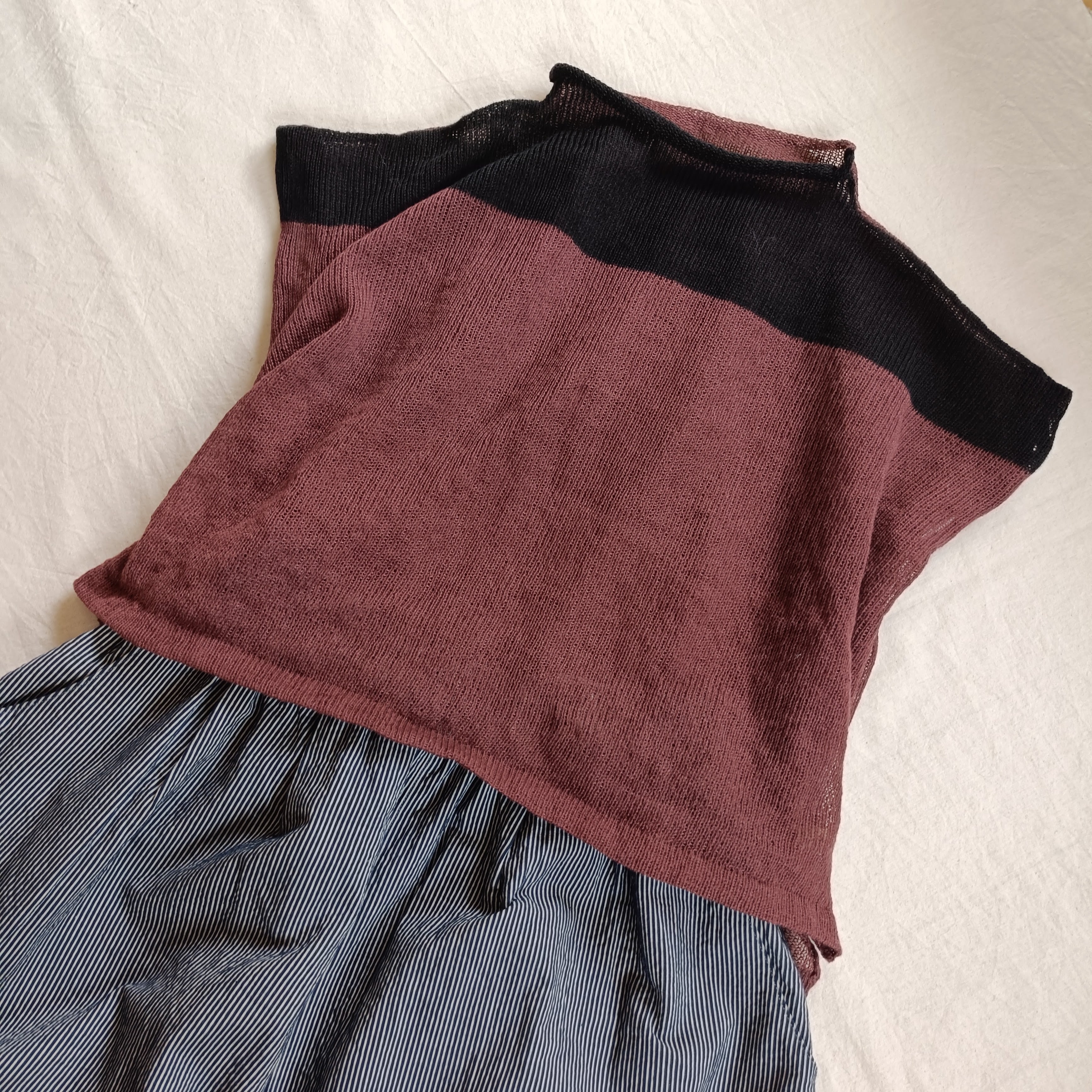 横にワイドに編んでいるので肩が落ちてフレンチスリーブになります。
