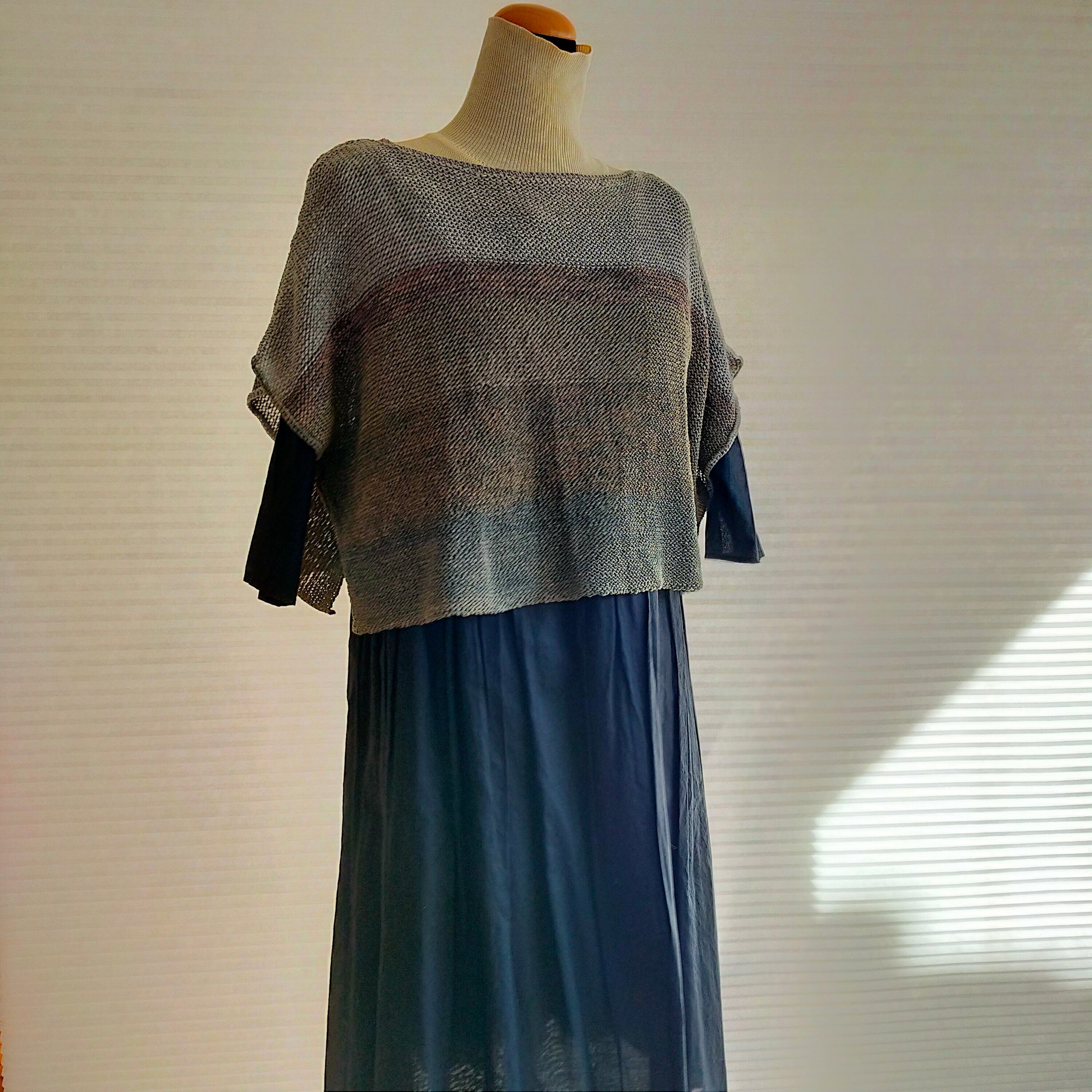 平らなシャリ感のあるシルク糸を使っています。ラフな感じは麻の手触りに似ています着ていくうちに次第に柔らかになります。ラフなのに品があるのはこのシルク糸の特徴です。